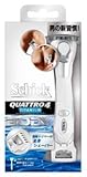 【数量限定!】新K-4テトラホルダー 替刃3コ付 価格: 1,155円 レビュー評価:4.0 レビュー数:6 「K-4 TETRA」は、4枚刃の最上部に他の3枚の刃より薄い板厚のしなやかな「エキストラブレード」を搭載しています。これにより刃から肌にかかる圧力が効率的に分散し、深剃り感は変わらずに、ソフトな剃り味が得られます。肌の弱い方や荒れやすい方にもおすすめ。 また、スムーザーにはアロエエキスにビタミンEを新たに加えると同時に、刃体の前後左右の計4個所に採用することで、より滑らかな肌辺りとなっているほか、ヘッドの首振りの可動域を後方のみに抑制することで過度な深剃りを抑えています。 ハンドル部分は、社団法人 人間生活工学研究センター(経済産業省所管)での実験データを基に、 |